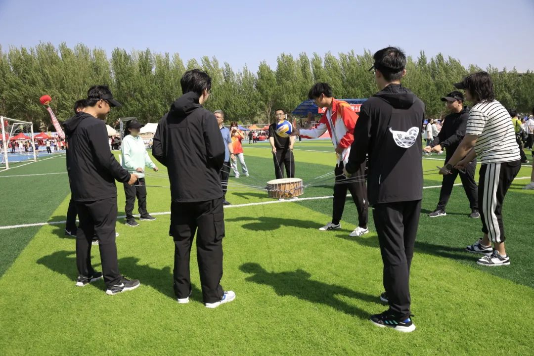 本次运动会设置集体大搬运、众星捧月两个教工趣味项目。“集体大搬运”每队要求10人依次搬运排球,生动还原石油会战时期“人拉肩扛”的历史场景。“众星捧月”每支队伍由10名队员组成,各握一根连接鼓面的九米长绳,通过同步发力使鼓面弹起直径30厘米的“校庆球”。
