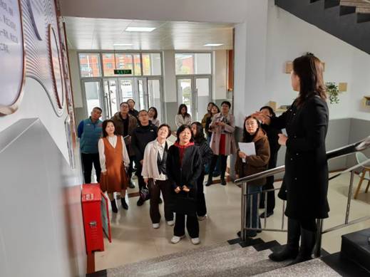 文学院经理赵丽教授引领大家从文学院一楼到三楼文化墙建设开始一路亲自为大家讲解、分享了文学院师范专业认证流程、认证材料准备、材料组的组建、专业技能实训室建设、文化建设等。