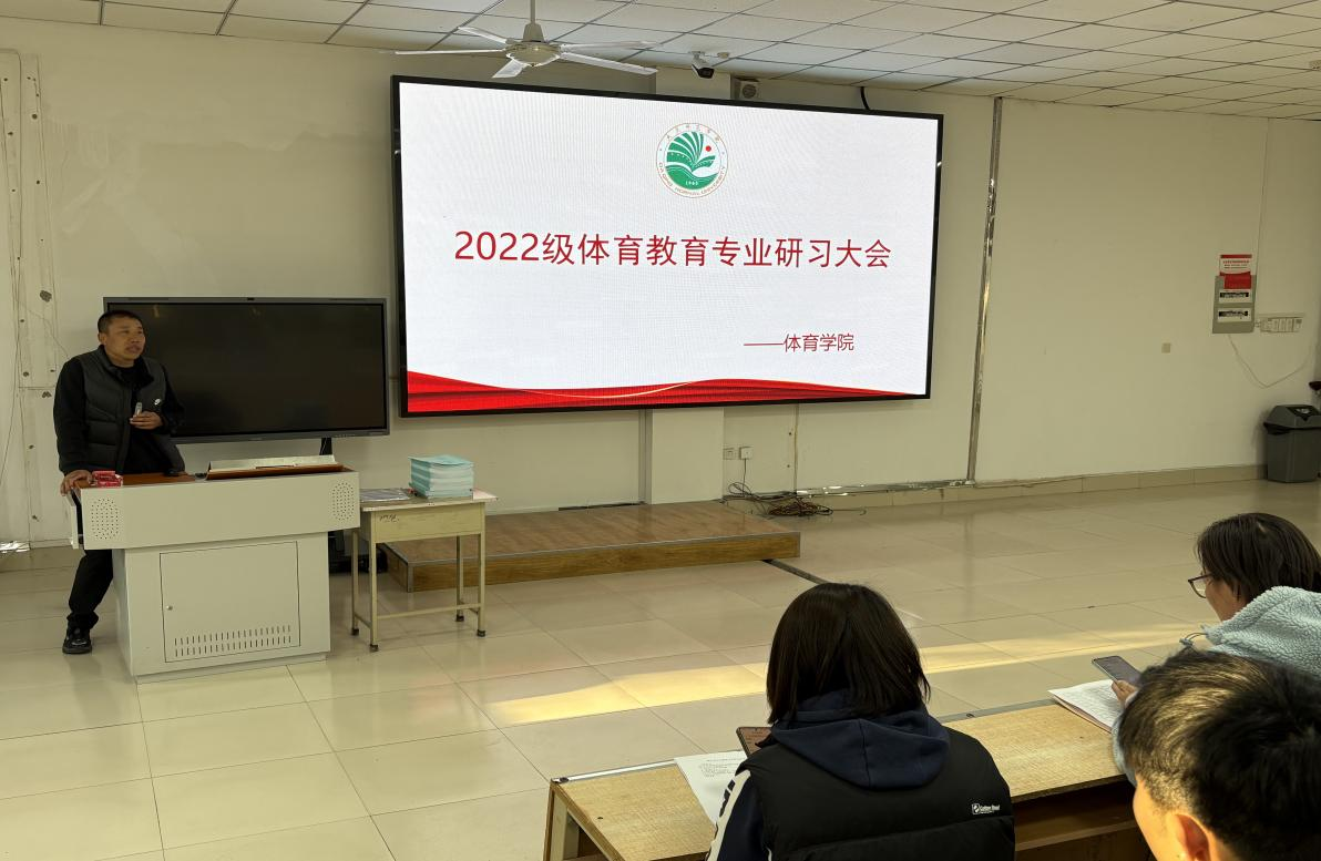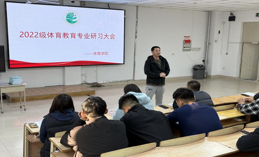 2025年4月18日,体育教育专业教育研习动员大会在主楼阶梯教室1-3举行。参加本次会议的有best365中国官方网站教学负责人刘大鹏、教育研习带队教师,以及2022级体育教育专业全体员工,会议由体育教育专业负责人谢恩秋主持。