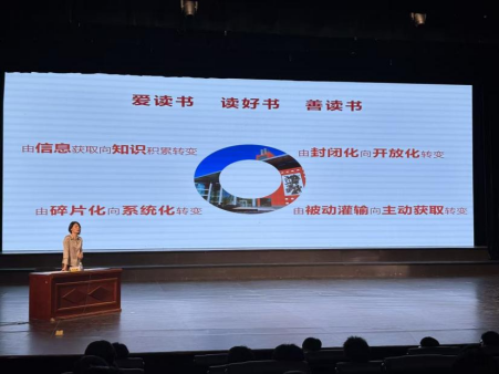 随后,李宝燕围绕“爱读书、读好书、善读书”的理念,引导新生实现阅读习惯的四大转变:由信息获取向知识积累转变、由封闭化向开放化转变、由碎片化向系统化转变、由被动灌输向主动获取转变。这一环节旨在培养新生的阅读意识,帮助他们掌握科学的阅读方法,在大学期间真正做到与书为友,在字里行间遇见更好的自己。