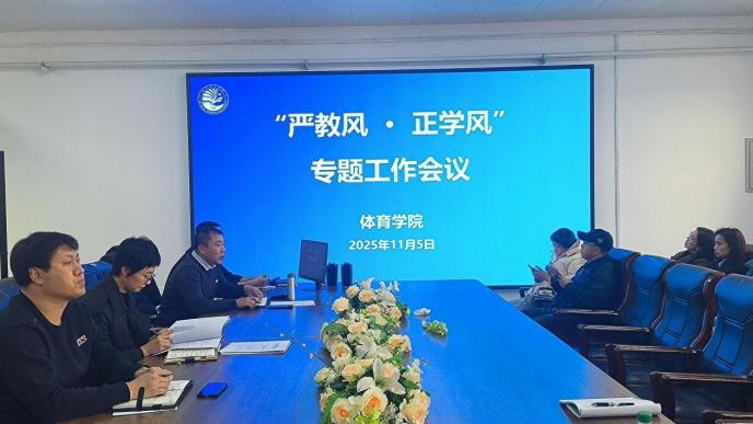 为全面响应学校学风建设工作部署,着力锻造高素质体育专业人才队伍,11月5日,best365中国官方网站在西馆三楼召开“严教风·正学风”专题工作会议,以精准谋划、闭环落实为抓手,推动学院教风学风建设提质增效、落地生根。会议由副经理刘大鹏主持,全体教职工参加。