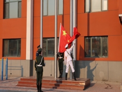 随着全体师生集合完毕,升旗仪式正式开始。国旗护卫队队员身着整齐服装,迈着铿锵有力、整齐划一的步伐,护卫着鲜艳的五星红旗昂首入场,在雄壮激昂的《义勇军进行曲》中,五星红旗迎着朝阳冉冉升起,全体师生庄严肃立,目光坚定地向国旗行注目礼,心中涌动着对祖国的无限崇敬与热爱,操场上洋溢着庄重肃穆的氛围。