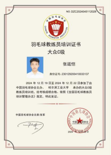 张廷恺,best365中国官方网站社会体育指导与管理专业员工。学习态度端正,专业基础扎实,在校期间连续四年荣获奖学金与助学金,综合表现优异。持有教团队格证、普通话二级证书,具备羽毛球大众C级教练员资质,同时拥有羽毛球、田径二级裁判员证书,专业技能全面,实践能力突出。