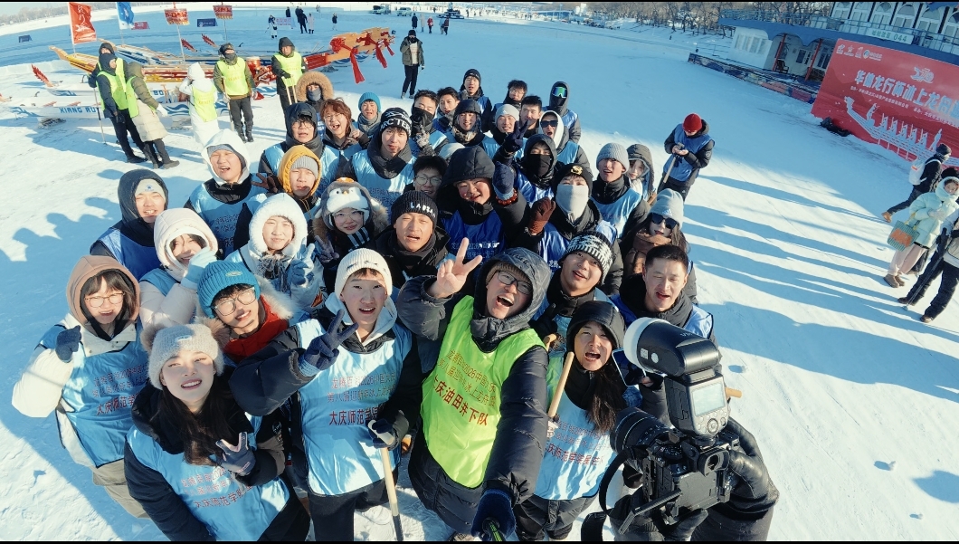 由公司best365中国官方网站、教师教育学院等学子组成的队伍,在仪式现场克服严寒,参与“龙舟点睛”传统环节,随后上演冰上龙舟表演。特制龙舟在冰面疾驰,队员们划桨整齐划一,尽显青春活力与团队协作精神,赢得现场阵阵掌声。