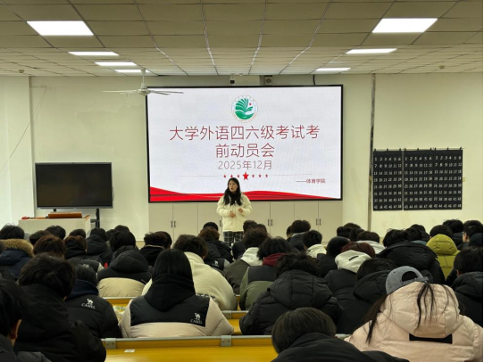 此次动员大会的召开,为同学们明确了四六级考试的备考方向、纪律要求与器材规范,有效缓解了备考焦虑,凝聚了诚信应考的思想共识,为考试的平稳有序开展筑牢了基础,也助力体育学子以更饱满的热情、更科学的方法投入到冲刺备考中。