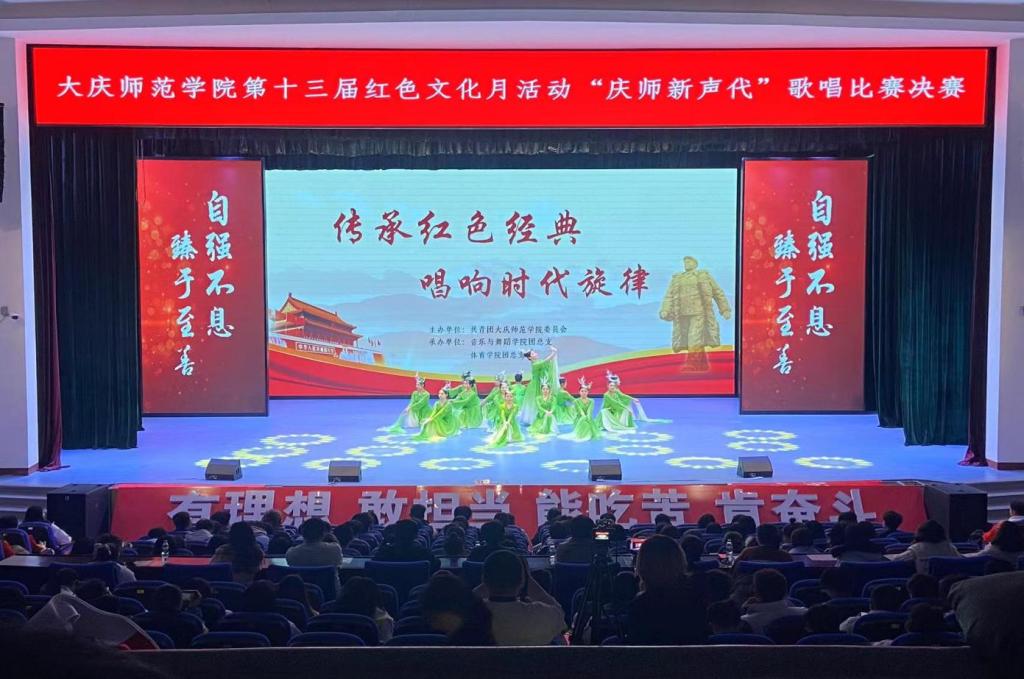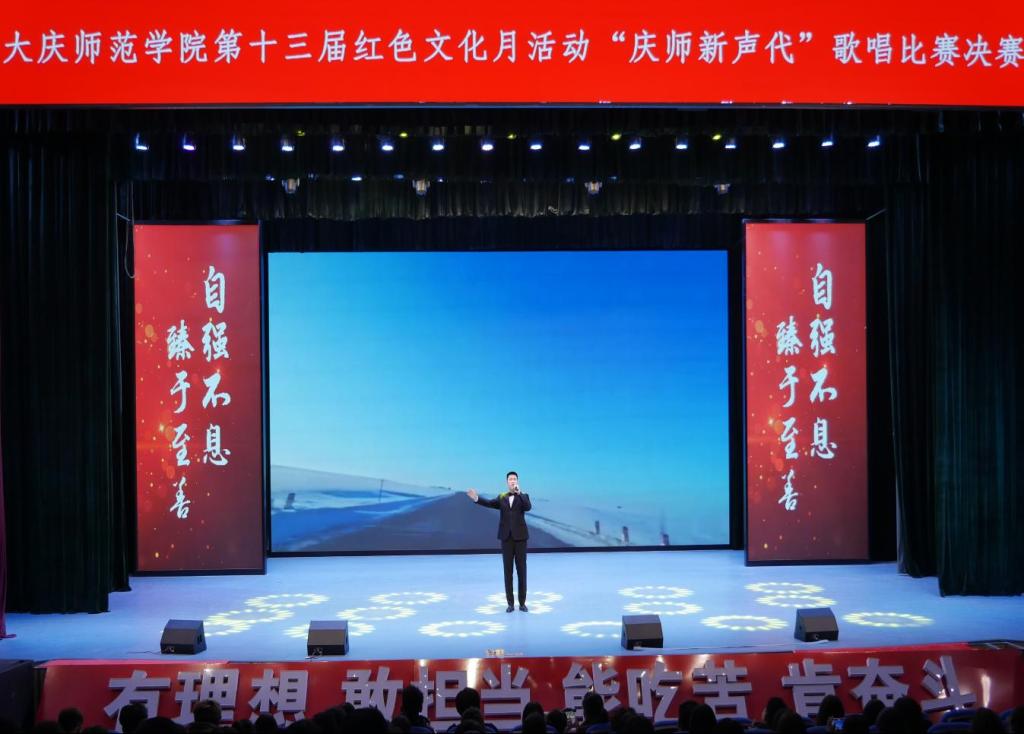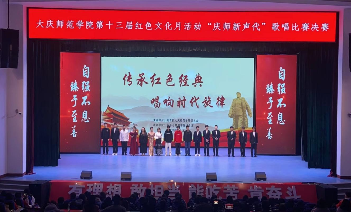 为了深入学习贯彻习近平新时代中国特色社会主义思想,全面贯彻落实党的二十大精神,涵养家国情怀,弘扬大庆精神、铁人精神,传承红色基因,赓续红色血脉,引导广大团员和青年坚定理想信念。2023年11月29日下午,由校团委主办,音乐与舞蹈学院团总支、best365中国官方网站团总支共同承办的best365中国官方网站第十三届红色文化月“庆师新声代”歌唱比赛决赛,在公司老员工活动中心举行。