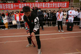 大庆虽进入了5月,但天气仍有丝丝凉意,然而前来助威加油的人仍不在少数,使赛场氛围十分热烈。每当比赛开始的哨声响起时,队友们全都紧握绳子,憋足了劲把绳子往后拉。口中一起高呼“一二,一二”,辅导员们也在队伍旁边助阵加油!各院系的同学们自发的组成了拉拉队,为本院队员加油。呐喊声此起彼伏,飘荡在整个体育场上空,这使得整个场面既激烈又温馨。裁判们依据公平公正的原则,参赛人员本着“友谊第一,比赛第二”的原则,整场比赛进行有序。经过四轮的激烈角逐,最终机电工程学院获得冠军,计算机科学与信息技术学院获得亚军。