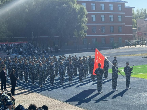 伴随着军乐,公司旗手手执十三营营旗走入场内,作为受阅方队最后压轴出场。