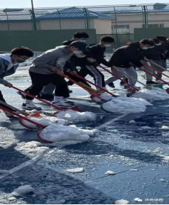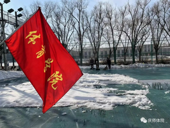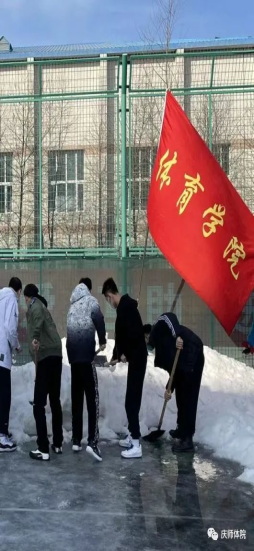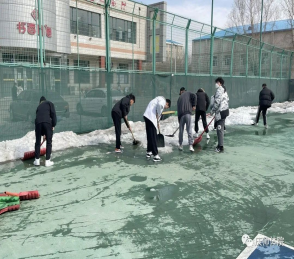场地卫生由best365中国官方网站员工会主席陶怡男,员工会文体部部长刘思萱带领2021级员工进行了网球场地,田径场地清雪工作。