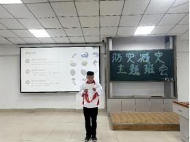 随后,学院组织了一场内容丰富的防灾减灾知识宣讲班会和团活,以“防灾减灾 珍爱生命”为题,向全体同学普及防灾减灾知识。耐心细致地向同学们介绍一些常见的灾害和自救措施。