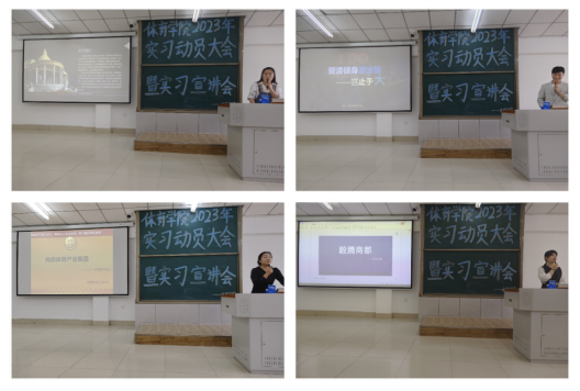 随后体育教育专业进行了教育实习安排,社会体育指导与管理专业进行了实习宣讲。参加本次宣讲的企业有北京易动行健体育场馆管理有限责任公司、人和国际健身俱乐部、大庆鑫爱渡文化传媒有限公司、哈尔滨尚霖体育发展有限公司、大庆毅腾商都购物有限公司、天津蓝鲸体育发展有限公司、大连拾光网球俱乐部等多家企业。与会企业分别介绍了各自企业发展文化、未来发展前景、员工晋升通道、提供的岗位以及薪资待遇。宣讲介绍后,企业与员工进行了互动交流,对同学们的疑问进行了解答,为接下来实习岗位的选择指明了方向。