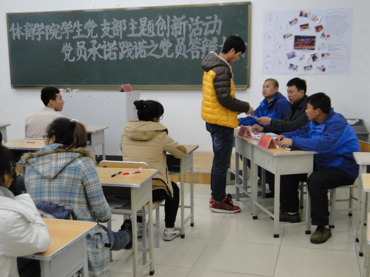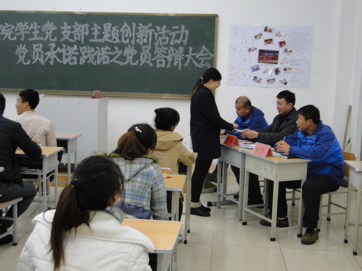 best365中国官方网站员工党支部在开展了系列党小组学习,完成了党员“承诺践诺”研讨会的基础上, 2015年12月16日在主楼123召开了员工党员“承诺践诺”答辩大会,会议由员工党支部书记孙波主持,全体2012级、2013级党员及预备党员参加了会议。员工党员从20道题中任意抽取一题上台进行答题,并结合自己的实际情况进行讲解。答辩推进会现场气氛热烈,每位党员受益匪浅,具有一定的教育意义。