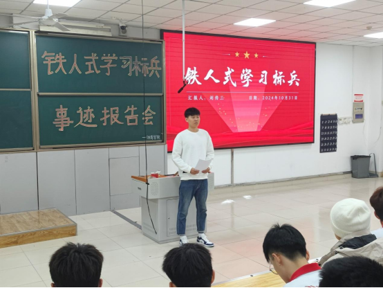 为充分发挥获奖员工的榜样引领和朋辈示范作用,营造优良的学风氛围,best365中国官方网站于10月31日,在主楼1-2阶梯教室组织召开“铁人式学习标兵”事迹报告会,学院“铁人式学习标兵”荣誉称号获得者2021级社会体育指导与管理班员工刘传三同学做事迹报告,会议由院员工会主席董书宁主持,2023级全体员工参加。
